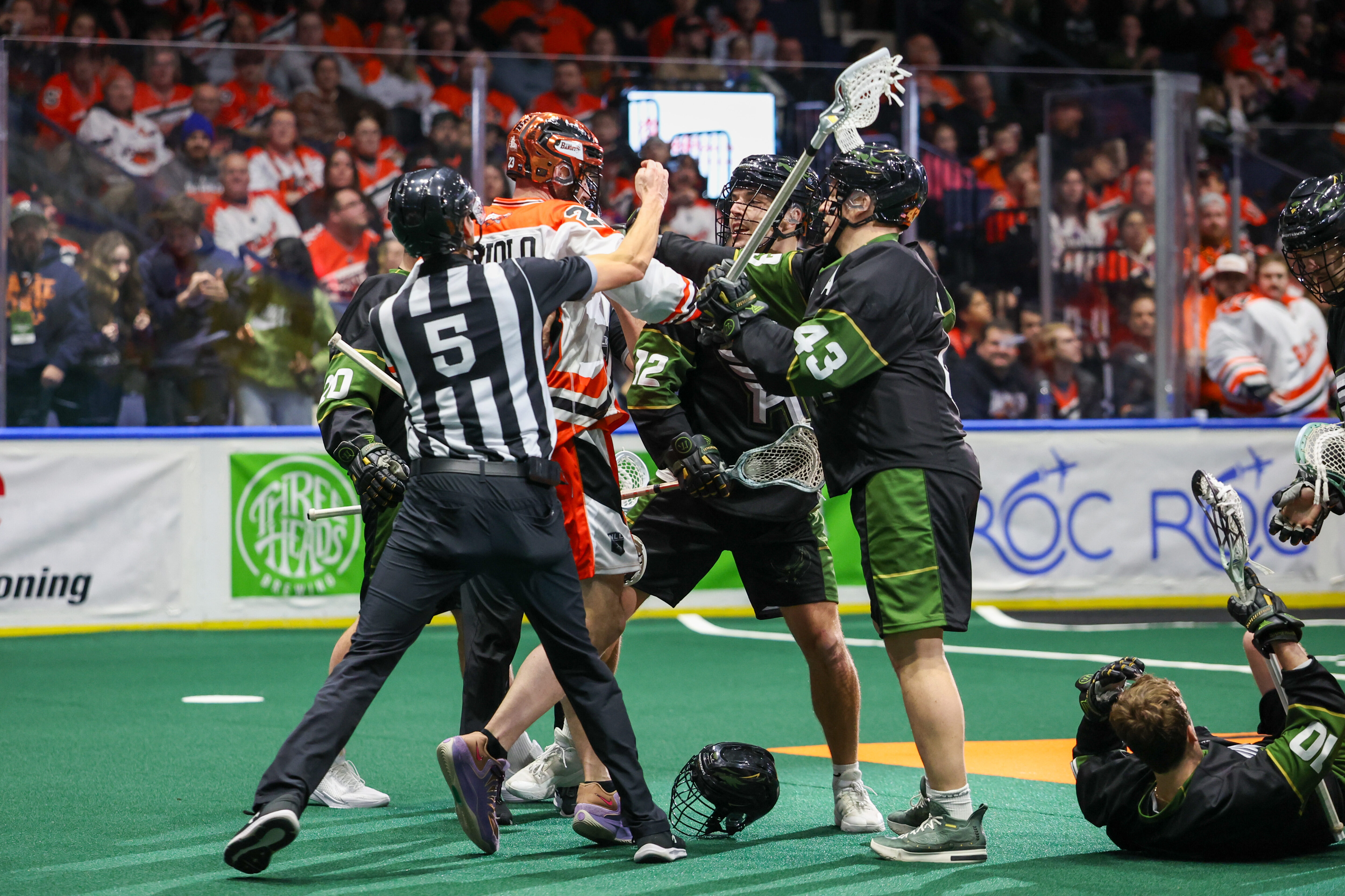 It was the first installment of the I-90 rivalry of the season on Saturday night, as the Buffalo Bandits made the hour-long trip down the thruway to clash with the Rochester Knighthawks. These games are always fun and intense because of the split crowd, as well as the disdain both clubs have for each other. After all, these two play for bragging rights in the entire state of New York….
